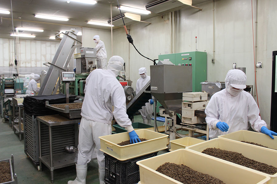 乾燥が完了したら、金属探知機と、目視で、1つ1つ丁寧に検品され、袋詰めして、出荷されます。